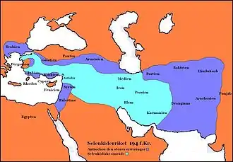 En 205 av. J.-C., Antiochos III entreprend l'expédition en Arabie qu'Alexandre le Grand n'a pas pu mener à bien. Il embarque pour l'Arabie depuis la Perside, probablement depuis le port d'Antioche de Perside dont la localisation est incertaine[22]. Le gros de son armée marche probablement vers Babylone à travers la Perside et l'Élam. Il parvient à Gerrha, sur la côte ouest du golfe Persique (actuelle Arabie saoudite), qui est un important port commercial, dont le négoce profite alors davantage aux Lagides qu'aux Séleucides, et un carrefour caravanier. Il obtient le versement d'un important tribut en prix de leur liberté. Après une escale à Tylos (actuel Bahreïn), il embarque pour Séleucie du Tigre en 204[23].