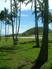 Anakena est une baie et une plage de sable blanc située sur l’île de Pâques dans le parc national de Rapa Nui et appartenant au Chili, dans l’océan Pacifique.