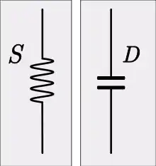Avant qu'une analogie électrique puisse être développée pour un système mécanique, il doit d'abord être décrit comme un réseau mécanique abstrait. Le système mécanique est décomposé en un certain nombre d'éléments idéaux dont chacun peut ensuite être associé à un analogue électrique[3]. Les symboles utilisés pour ces éléments mécaniques sur les schémas de réseau sont indiqués dans les sections suivantes sur chaque élément individuel.
