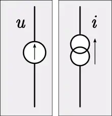 Des analogues existent pour les éléments électriques actifs de la source de tension et de la source de courant (générateurs). L'analogue mécanique dans l'analogie d'impédance du générateur de tension constante est le générateur de force constante. L'analogue mécanique du générateur de courant constant est le générateur de vitesse constante[14].