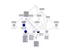 L'usage du treillis de Galois sur des matrices bipartites de données socio-sémantiques permet de regrouper par similitudes, tout en hiérarchisant les relations[10].
