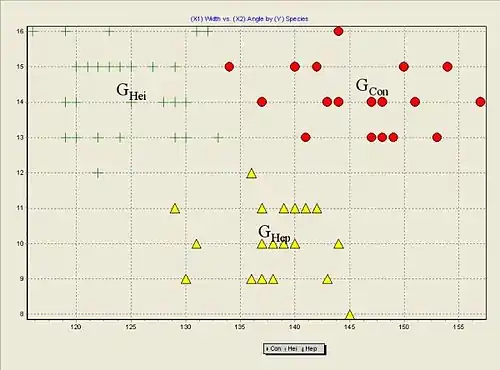 - En biologie, lorsque l’on veut affecter un objet à sa famille d’appartenance à partir de ses caractéristiques physiques. Les iris de Sir Ronald Fisher — qui est à l'origine de cette méthode — en est un exemple, il s’agit de reconnaître le type d’iris (setosa, virginica, et versicolor) à partir de la longueur/largeur de ses pétales et sépales.