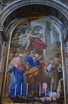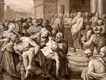 « Mais un homme nommé Ananias, avec Saphira sa femme, vendit une propriété, et retint une partie du prix, sa femme le sachant ; puis il apporta le reste, et le déposa aux pieds des apôtres. Pierre lui dit : "Ananias, pourquoi Satan a-t-il rempli ton cœur, au point que tu mentes au Saint-Esprit, et que tu aies retenu une partie du prix du champ ? S’il n’eût pas été vendu, ne te restait-il pas ? Et, après qu’il a été vendu, le prix n’était-il pas à ta disposition ? Comment as-tu pu mettre en ton cœur un pareil dessein ? Ce n’est pas à des hommes que tu as menti, mais à Dieu." Ananias, entendant ces paroles, tomba, et expira. Une grande crainte saisit tous les auditeurs. Les jeunes gens, s’étant levés, l’enveloppèrent, l’emportèrent, et l’ensevelirent. Environ trois heures plus tard, sa femme entra, sans savoir ce qui était arrivé. Pierre lui adressa la parole : "Dis-moi, est-ce à un tel prix que vous avez vendu le champ ?" "Oui, répondit-elle, c’est à ce prix-là." Alors Pierre lui dit : "Comment vous êtes-vous accordés pour tenter l’Esprit du Seigneur ? Voici, ceux qui ont enseveli ton mari sont à la porte, et ils t’emporteront." Au même instant, elle tomba aux pieds de l’apôtre, et expira. Les jeunes gens, étant entrés, la trouvèrent morte ; ils l’emportèrent, et l’ensevelirent auprès de son mari. Une grande crainte s’empara de toute l’assemblée et de tous ceux qui apprirent ces choses[2]. »