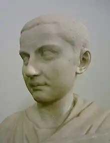 Né le 9 septembre 214 dans la région de Sirmium ou en Mésie dans une famille de condition modeste, Aurélien (Lucius Domitius Aurelianus, 270 – 275) [31] s'engagea très jeune dans l'armée romaine dont il gravit progressivement les échelons. Ayant appuyé la décision de ses collègues de renverser Gallien, il devint magister equitum en remplacement de Claude élu empereur par les troupes.