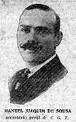 La Confédération générale du travail (Portugal) est fondée le à Coimbra[5], sur des bases nettement libertaires[1]. Manuel Joaquim de Sousa en est élu secrétaire général[6].