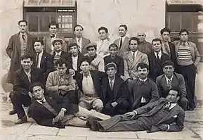 - (pt) « Na sequência das prisões que acompanharam e sucederam ao movimento do 18 de Janeiro de 1934, foram presos muitos militantes confederais. Na imagem encontramos um grupo de militantes presos no forte de Peniche. Sentado ao centro, encontra-se "Manuel Joaquim de Sousa. À sua esquerda, José Francisco; à direita, António Inácio Martins. De pé, da esquerda para a direita: José António Machado, José Vaz Rodrigues e José Meste Vargas Júnior, este morto na Guerra Civil de Espanha". », Inconnu, Arquivo Histórico-Social, « Militantes cegetistas presos em Peniche », sur mosca-servidor.xdi.uevora.pt, 1934 ou 1935.