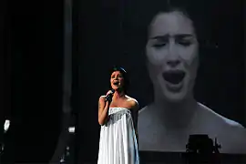 Sa prestation se démarque par son originalité : la mise en scène consiste en plusieurs écrans géants diffusant un morphing du visage de l'artiste, qui passe de 20 à 70 ans. Ce morphing est par ailleurs très expressif, la femme représentée sur les écrans passant d'une émotion neutre à de la tristesse (pleurs).