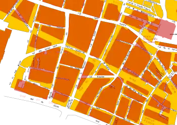 - rue de la Tonnellerie (voie aujourd'hui disparue correspondant à peu près à la partie sud de l'allée André-Breton du quartier des Halles)[4]