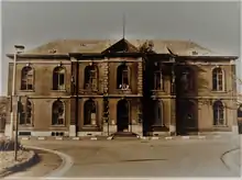 Le bâtiment était originellement un bâtiment de style Art nouveau construit pour la Compagnie de Charbonnages-Belges. Frameries était le siège de la S.A. des Charbonnages belges, fondée en 1858 et propriété de la S.A. John Cockerill. En 1972 on voulait rénover le bâtiment pour installer des bureaux pour la police. À la fin des années 1980, l'Administration Communale voulait installer ses bureaux dans le bâtiment. Celui-ci a été démoli en 1990[1].