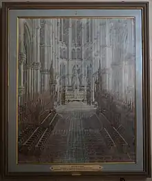 L'église Saint-Nicaise sur les tapisseries commandées par Robert de Lenoncourt (XVIe siècle) pour orner la Basilique Saint-Remi. On n'y reconnaît pas les tours gothiques de l'église