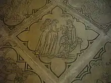 On y trouve aussi des dalles issues de la chapelle Saint-Éloi ou du chœur de l'abbatiale, ce que commente Viollet-le-Duc : « Ce dallage date des premières années du XIVe siècle et représente des scènes de l’Ancien Testament, inscrites dans des compartiments carrés. (...) Là les traits gravés sont remplis de plomb sans autre coloration. Il n’est pas besoin de dire que ces sortes de dallages coûtaient fort cher, et qu’on ne pouvait les placer que dans des églises riches, dans les sanctuaires et quelques chapelles privilégiées. »[11].