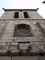 De l'ancienne église paroissiale, détruite au début du XXe siècle, ne subsiste qu'une tour-clocher datant de 1784. Le soubassement, jusqu'à la flèche, est une construction en pierre de taille, à base carrée, percée de baies en plein cintre à bandeaux unis sur deux faces, et flanquée sur les deux autres de tourelles d'escalier. La tour est couronnée par une galerie ajourée. La flèche octogonale est également en pierre.