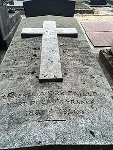 Tombe du général André Caille au cimetière nouveau (div. 2) de Boulogne-Billancourt (Hauts-de-Seine).