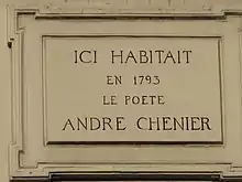 À Paris, dans le 2e arrondissement, une rue Chénier existe depuis 1864, à quelques pas du 97 rue de Cléry où est apposée une plaque mémorielle.