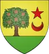 D'or au noyer au naturel, terrassé de sinople, senestré d'une étoile de gueules soutenu d'un croissant du même[4].