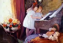 - 1984 Réalise La petite orléanaise, huile sur toile qui ornera la couverture de la monographie André L’Archevêque aux Éditions Marcel Broquet.