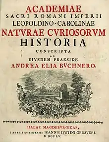 Page de titre de l'Histoire de l'Académie des Curieux de la nature (1755).