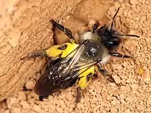 La femelle peut éventuellement creuser une « fausse entrée » non loin de son nid, permettant probablement d'orienter les parasites et les prédateurs sur une mauvaise piste. Cette technique se révèle être particulièrement efficace sur Nomada lathburiana. Il arrive que la femelle se prenne à son propre piège et commence à creuser à l'emplacement de la mauvaise entrée, avant de retrouver la bonne[3].