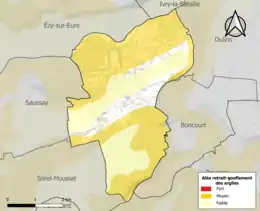 Le retrait-gonflement des sols argileux est susceptible d'engendrer des dommages importants aux bâtiments en cas d’alternance de périodes de sécheresse et de pluie. 57,5 % de la superficie communale est en aléa moyen ou fort (52,8 % au niveau départemental et 48,5 % au niveau national). Sur les 1 094 bâtiments dénombrés sur la commune en 2019, 249 sont en aléa moyen ou fort, soit 23 %, à comparer aux 70 % au niveau départemental et 54 % au niveau national. Une cartographie de l'exposition du territoire national au retrait gonflement des sols argileux est disponible sur le site du BRGM[24],[Carte 2].