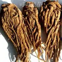 - « Saveur douce, [nature] chaud, non toxique. Traite la toux à contre-courant avec un qi ascendant, le paludisme chaud [avec des sensations de] froid et chaud avec frissons dans la peau, comme si de l’eau était versée sur la peau, les fuites vaginales et interruption de grossesse chez la femme, toutes sortes de plaies malignes et d'ulcères purulents et de plaies incisées. Boire en décoction. Pousse dans les vallées. »[n 5]