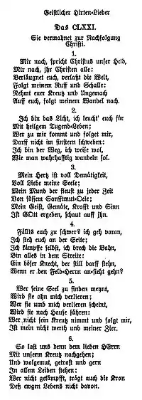 On a pu établir que des poèmes de Silesius figurent dans les paroles des hymnes publiés dans le Gesang-Buch (« Livre de chants liturgiques » ou recueil d’hymnes) de Nuremberg (1676), et ceux de Freylinghausen (1704), de Porst (1713) et de Burg (1746). Soixante-dix-neuf hymnes utilisant ses vers ont été inclus dans le de (« Christ-Catholisches Singe und Bet-Büchlein » en anglais) de Nicolaus Zinzendorf (1727). Au XVIIIe siècle, ils étaient fréquemment utilisés dans les temples luthériens ainsi que dans les églises catholiques et moraves[36]. Beaucoup de ces hymnes sont encore populaires dans les Églises chrétiennes aujourd'hui.