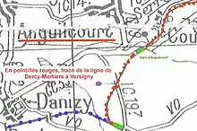 De 1878 à 1959, Anguilcourt-le-Sart a été traversée par la ligne de chemin de fer Dercy-Mortiers à Versigny, qui , venant de Nouvion-le-Comte, passait au sud-ouest du village et se dirigeait vers Versigny.