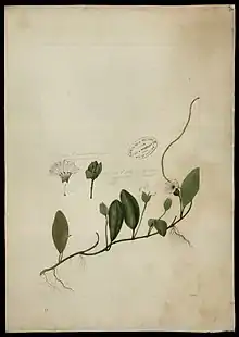 Cette espèce a été nommée par le botaniste suisse Jacques Denys Choisy (1799-1859) en 1837[11]. Choisy était, en plus d'être botaniste, membre du clergé et théologien/philosophe. La description de l'espèce a été publiée dans les Mémoires de la Société de Physique et d'Histoire Naturelle de Genève (Genève & Paris). Le nom de Choisy a remplacé celui du botaniste néerlando-autrichien Nikolaus Joseph von Jacquin (1727-1817), qui a nommé les taxons Convolvulus martinicensis en 1763.