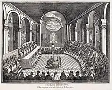 - au : sessions 1 à 8 du concile de Trente. Les Pères précisent le texte du symbole de la Foi, déterminent les livres canoniques de l’Ancien et du Nouveau Testament, les règles à suivre pour éditer des textes canoniques, et imposent l’usage obligatoire de l’édition latine de Saint Jérôme (Vulgate). Ils établissent la doctrine de la justification, rappellent que l’Église reconnaît sept sacrements. Ils précisent les conditions de choix des évêques, rappellent l’interdiction du cumul des évêchés et des cures, précisent les règles de sacre des prélats, les règles d’établissement et d’entretien des institutions scolaires, et celles de la désignation des prédicateurs[21].