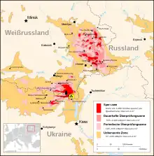 - La catastrophe de Tchernobyl () est la plus grande catastrophe nucléaire du XXe siècle. Les radiations se sont propagées dans de nombreux pays ; l'Ukraine et la Biélorussie furent les plus touchées. Près de 800 000 soldats et fonctionnaires sont dépêchés sur place ; environ 15 000 meurent pendant ou à la suite de leur mission, et des dizaines de milliers devinrent invalides. Le taux de cancer a également augmenté[7].
