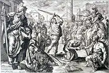 Martyre de Saint Paul, gravure de Hendrik Goltzius, XVIe siècle.