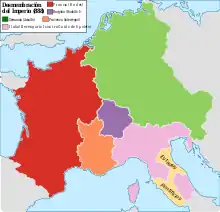 Démembrement de l'empire carolingien en 888.