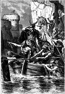 Les barques des Normands, gravure pour l'Histoire de France de François Guizot, par Alphonse-Marie-Adolphe de Neuville, 1883.
