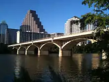 Le Ann W. Richards Congress Avenue Bridge (anciennement connu comme le Congress Avenue Bridge) traverse lac Lady Bird à Austin, au Texas. Avant 1960 et la construction du barrage de Longhorn, le pont traversait le Colorado.