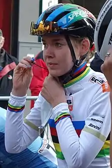 Mi-septembre, elle participe aux championnats d'Europe sur route. Elle se classe deuxième du contre-la-montre derrière Ellen van Dijk. Sur la course en ligne, elle se préserve pour le final. Dans la dernière ascension de la côte de Cadoudal, elle suit l'accélération de Katarzyna Niewiadoma avec Elisa Longo Borghini, Alena Amialiusik et Rasa Leleivytė. Elle lance le sprint sur le replat et résiste à la remonter de la Polonaise. Elle remporte ainsi ces premiers championnats d'Europe élites[41]. Aux championnats du monde, elle se classe seulement treizième du contre-la-montre individuel. Elle dit ne pas avoir eu de jambes[42].
