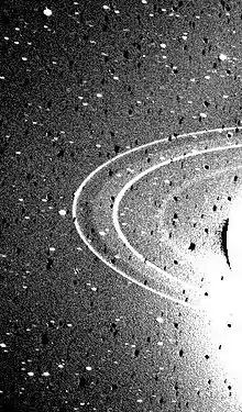 Les premiers éléments tangibles sur la présence d'anneaux datent de 1984[1], où ils sont observés comme un anneau incomplet, des« arcs », au cours d'une occultation observée simultanément de l'Observatoire de La Silla (ESO) par Jean Manfroid (Institut d'Astrophysique de Liège), Reinold Haefner (U. de Munich) et Patrice Bouchet (ESO) à la demande d'André Brahic et de son équipe de l'Observatoire de Paris, et du Cerro Tololo Interamerican Observatory par l'équipe de William Hubbard[2],[3],[4].