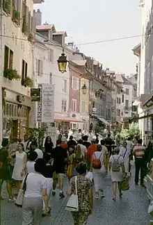 La pureté réputée de l'air alpin et des sports d'hiver environnants donnent naissance à une ère touristique qui prend son essor en 1960, lors de la mise en place d'un programme de conservation des espaces verts et de restauration du patrimoine culturel. Parallèlement, la ville organise son festival international du film d'animation et sa fête du lac, attirant chacun environ 100 000 visiteurs chaque année. En 1973, ouvre l'Institut universitaire de technologie d'Annecy, qui fusionne en 1979 avec le centre universitaire de Savoie pour, en 2015, former l'université Savoie-Mont-Blanc, avec le campus de Savoie Technolac et Jacob-Bellecombette. En 2021, Annecy est élue ville de France où l'on vit le mieux, classement établi par l'association Villes et villages à partir de 183 critères[1], mais se fait détrôner en 2022 par Angers à cause du critère associé à l'accession au logement.