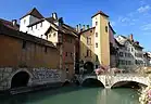 ![]() ![]() ![]() ![]() ![]() ![]() ![]() De haut en bas et de gauche à droite : panorama sur le lac d'Annecy, vue sur le vieil Annecy, le château d'Annecy, la basilique de la Visitation, le palais de l'Isle, l'Impérial Palace et le Thiou dans la vieille-ville. |
