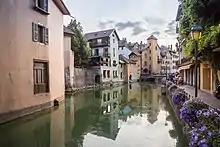 Résidence historique des comtes de Genève au XIIIe siècle, puis des comtes de Savoie au XVe siècle, la bourgade devient capitale de Savoie en 1434 grâce à l'apanage de Savoie-Nemours. En 1536, la Réforme calviniste de Genève déclenche une Contre-Réforme, transformant Annecy en bastion catholique, qui accueille l'évêque de Genève aux côtés de François de Sales. En 1665, la « Rome des Alpes » lègue son rôle de capitale à Turin lors du rattachement au duché de Savoie et, en 1860, le traité de Turin annexe la cité à la France. Les canaux du Vassé, de Saint-Dominique et du Thiou qui protégèrent la Venise des Alpes jusqu'alors, apportent au XIXe siècle la force hydraulique à l'artisanat textile, laissant progressivement place à l'industrialisation du XXe siècle, subsistant de nos jours à travers la présence de sièges sociaux tels que Fusalp, SNR, Salomon, Mavic ou Entremont.