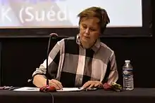 Anneli Furmark pendant une performance graphique au Festival d'Angoulême 2017.