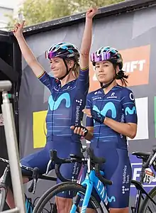Au Tour d'Espagne, lors de la montagneuse cinquième étape, Demi Vollering s'impose en étant la plus rapide. Annemiek van Vleuten finit trois secondes derrière. Sur l'étape suivante, alors que Vollering et ses coéquipières tardent à revenir dans le peloton après une pause à soixante-dix kilomètres de la fin, la Movistar fait le forcing et provoque une scission du peloton[130]. Celle-ci place une attaque dès le pied de la première difficulté du jour, l'Alto de Fuente de las Varas, provoquant une importante sélection. À 30 km, van Vleuten attaque de nouveau, au pied du Puerto de Campo el Hayal, suivie uniquement par Realini. Elle bat Van Vleuten au sprint tandis que la Néerlandaise prend la tête du classement général. Cette étape fait par la suite polémique. Dans la dernière étape, qui se conclut au sommet, Vollering fait feu de tout bois et gagne. Elle reprend cinquante-six secondes à Van Vleuten mais perd le classement général pour neuf secondes. Elle est ensuite cinquième du Tour du Pays basque.