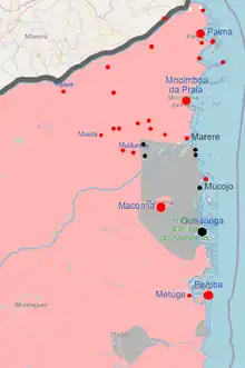 Selon le Bureau de coordination des affaires humanitaires, au moins huit villages ont été attaqués en février dans la province du Cabo Delgado. Le 18 mars, au moins 7 militaires ont été tués lors d'une attaque de l'État islamique sur l'île de Mameto[18].