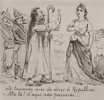 Les réactions hostiles des autorités, tant politiques qu’ecclésiastiques, gagnèrent en ampleur, —Antônio Conselheiro se vit désormais interdit, à la suite de la circulaire de l’évêque de la Bahia de 1882, de prêcher dans les églises du diocèse — et finirent par l’ulcérer. Ses conflits avec les autorités s’aggravèrent encore avec la proclamation de la République, à laquelle il s’opposait, critiquant la levée de nouveaux impôts, la sécularisation des cimetières et la création du mariage civil et l’état civil des décès et des naissances. Il avait une croyance mystique dans la monarchie, forme politique tenue pour éternelle et bénie par Dieu. Il pensait que la restauration du trône et le retour de la famille royale étaient des faits aussi inévitables que le lever du soleil au début de chaque nouvelle journée[52].