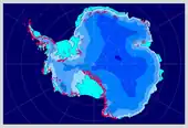 Finalement, l'épaisseur et la surface de glace de la partie orientale de l'inlandsis semble stable voire localement en augmentation[80]. Ainsi, plus de 50% de la surface en glace est restée très constante ou a subi une légère augmentation d'épaisseur, dans la partie orientale de la banquise, où les températures peuvent descendre jusqu'à −80 °C.