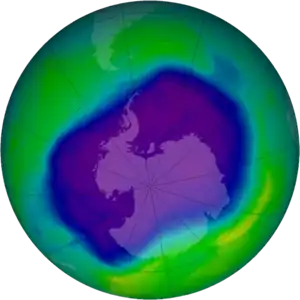 En 2002 le segment Larsen B de la plateforme de glace de Larsen dans la péninsule Antarctique se disloque[81]. Entre le et le , environ 570 km2 de glace provenant de la plateforme de glace de Wilkins située dans la partie sud-ouest de la péninsule se désintègrent, mettant en danger les 15 000 km2 de glace restant. Ils sont alors retenus par une étendue de glace de seulement 6 km de large environ[82], avant de se désintégrer le [83],[84].