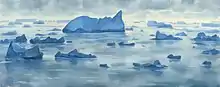 La banquise s'agrandit tous les ans durant l'hiver austral mais la plus grande partie de la glace fond pendant l'été. Cette glace, formée à partir de l'eau des océans, flotte sur cette même eau et ne contribue donc pas à l'élévation du niveau de la mer. La surface de la banquise est restée approximativement constante durant les dernières décennies bien que les informations concernant ses changements d'épaisseur soient imprécises[61],[62].