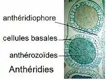 Dessin d'une coupe d'anthéridie d’une espèce d'hépatiques.