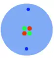 Schématisation d'un atome d'antihélium 4, avec 2 antiprotons et 2 antineutrons.
