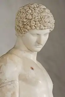 En partie à cause de ses cheveux, peu ressemblants par rapport aux autres modèles attestés représentant Antinoüs, la statue est maintenant considérée comme[7] une copie romaine d'époque impériale d'une statue grecque du IVe siècle av. J.-C. représentant Hermès. Un tel changement d’identification était déjà en cours avant même 1900 quand Augustus Hare (en) faisait observer dans ses Walks in Rome :