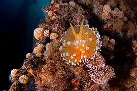 Les rhinophores lamellés sont particulièrement grands et bien visibles, non rétractiles et sans gaines[2].