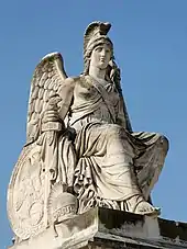 - Statues accompagnant l’Arc de triomphe du Carrousel (1809) : « La France Victorieuse »[5], et « L’Histoire »[6] placées sur l'acrotère de la grille de la cour d'honneur du palais des Tuileries (côté sud) en pendant de deux Victoires de Pierre Petitot (côté nord). Déplacées, mais toujours visibles en bordure de la place du Carrousel, de part et d'autre de l'axe royal, contrairement à celles de Petitot qui ont été déblayées après l'incendie du palais des Tuileries ;